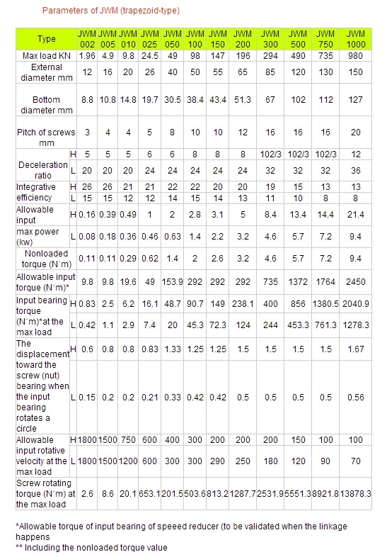 JWM (trapezoid-type) is applicable to the occasion with the high load, low speed and frequent work.