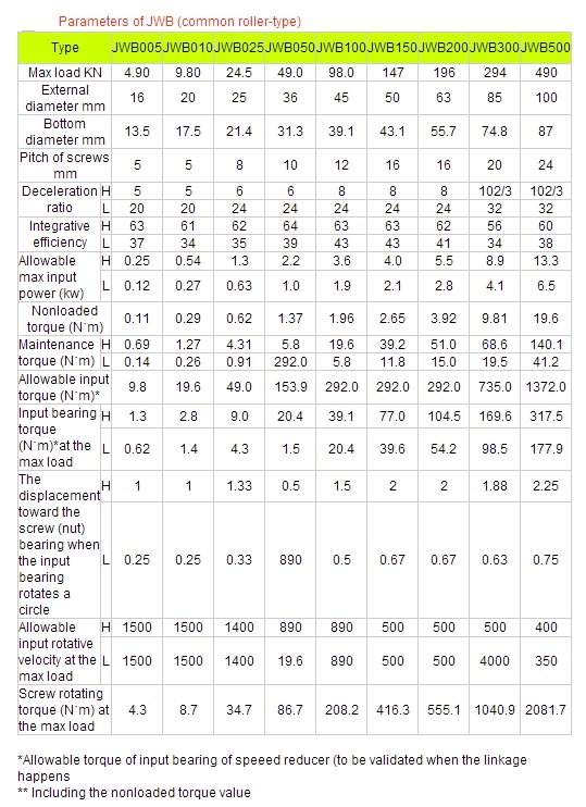 2. Speed of Jacks: the moving length of the screw or screw nut per minute or per second.