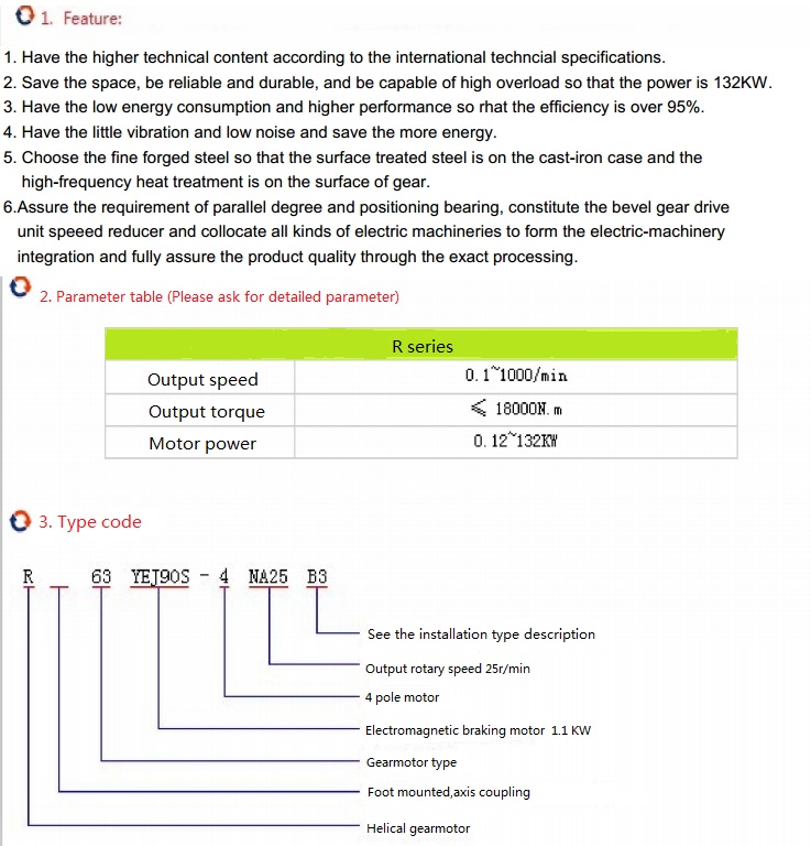 3 Changing the length and diameter of the output and input shaft, and process surface with anti-corrosion and inactivation.